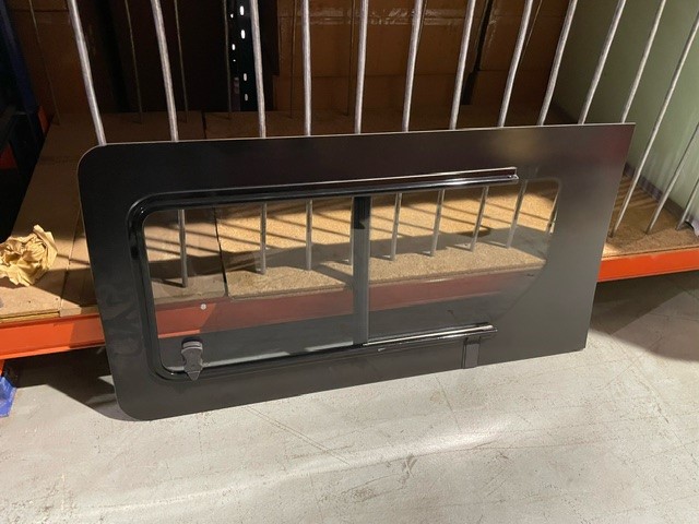 DescriptionRH FRONT SLIDING DOOR - BONDED SLIDING WINDOW ASSEMBLY GLASS IN GLASS FRAME - GREY (WITH OPENING AT FRONT OF WINDOW)